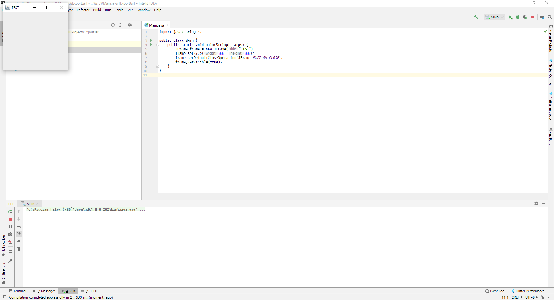 확인하기 쉽게 JFrame 창을 띄우는 간단한 자바 코드를 작성하겠습니다.