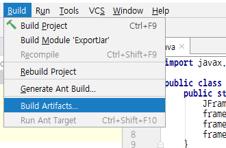 Build > Build Artifacts를 클릭하면 작은 컨텍스트 창이 나옵니다.